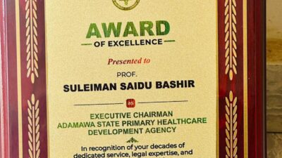 The Executive Chairman of the Adamawa State Primary Healthcare Development Agency (ASPHCDA), Dr Sulaiman Saidu Bashir, has been honoured with an Award of Excellence in recognition of his contributions to the improvement of primary healthcare services across the state.